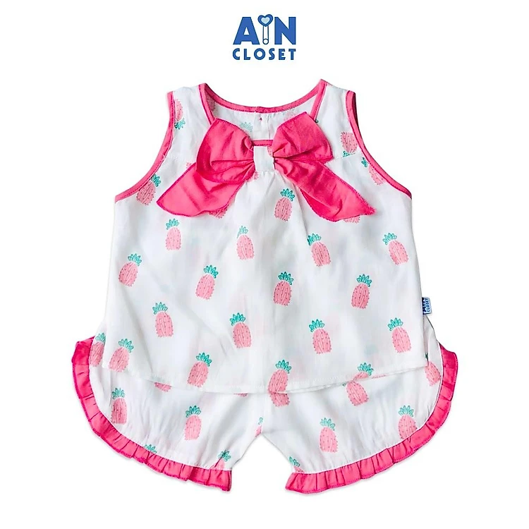Bộ quần áo ngắn bé gái Họa tiết Xương rồng nơ hồng - AICDBGO67BUQ - AIN Closet