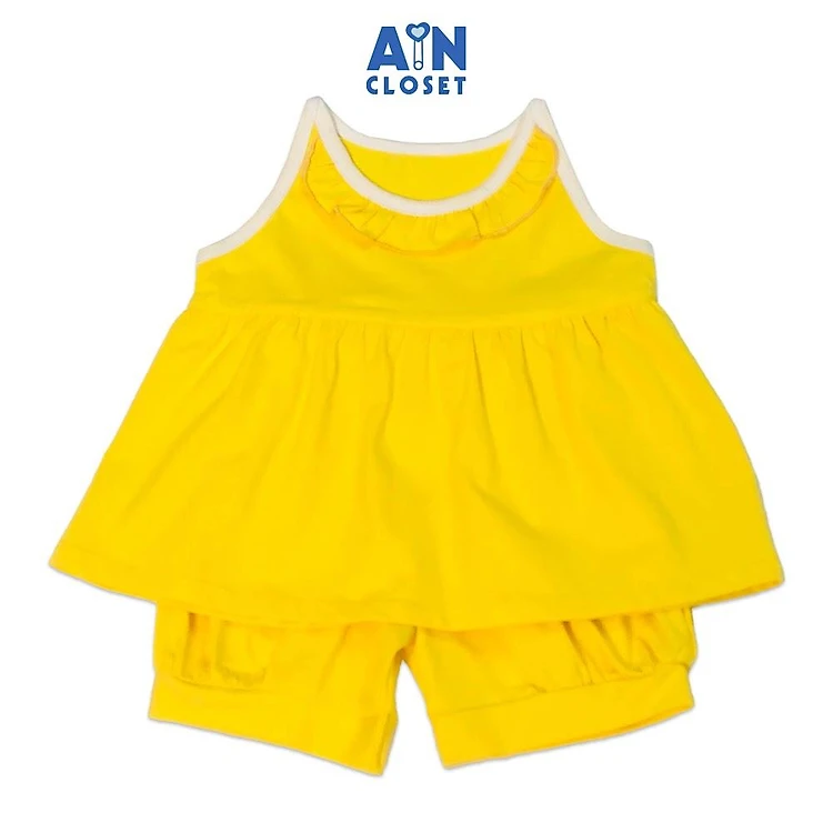 Bộ quần áo ngắn bé gái Vàng sát nách thun cotton - AICDBGTRXMO9 - AIN Closet