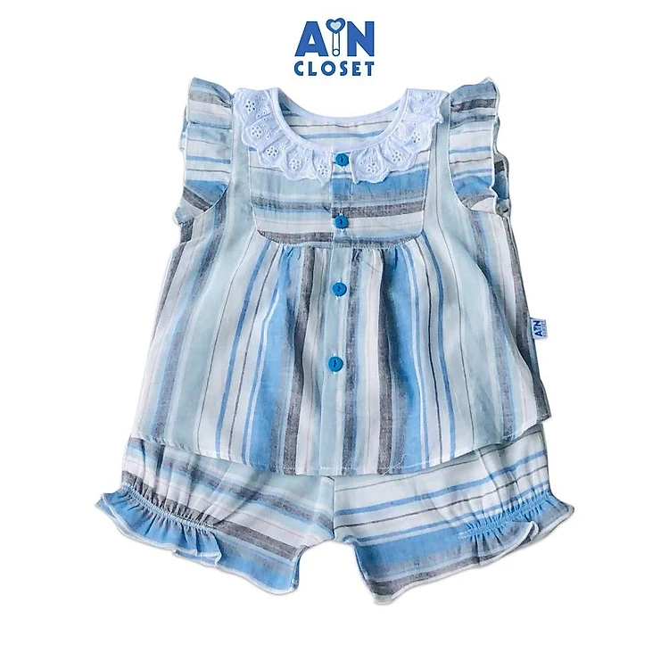 Bộ quần áo ngắn bé họa tiết Kẻ chỉ xanh - AICDBG9QKZF7 - AIN Closet