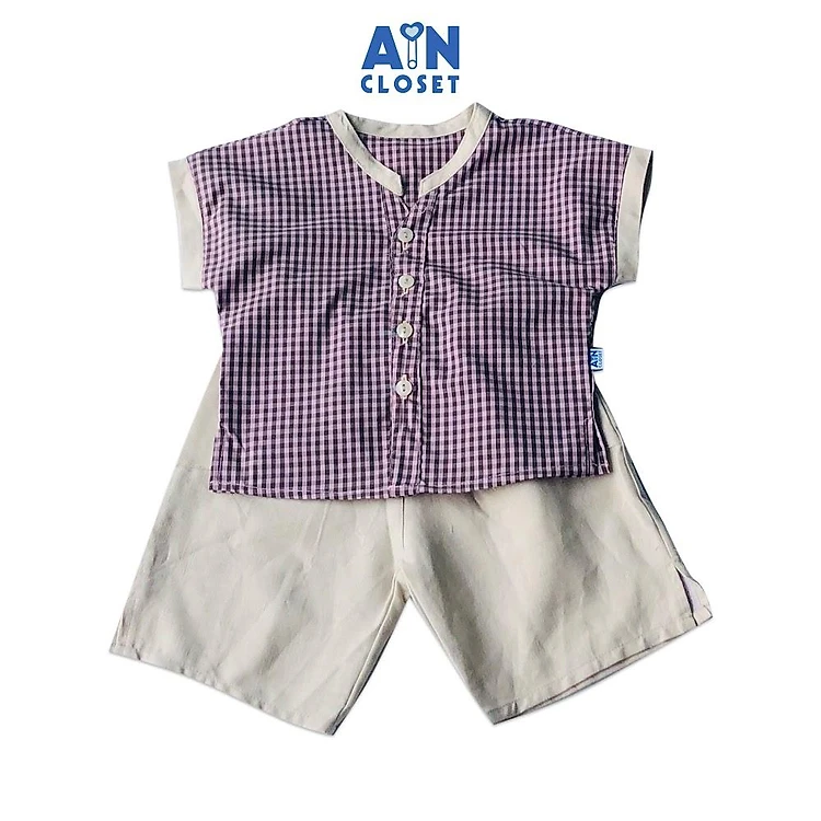 Bộ quần áo ngắn bé trai Sơ mi họa tiết Caro nhí tím - AICDBGAGOLGW - AIN Closet
