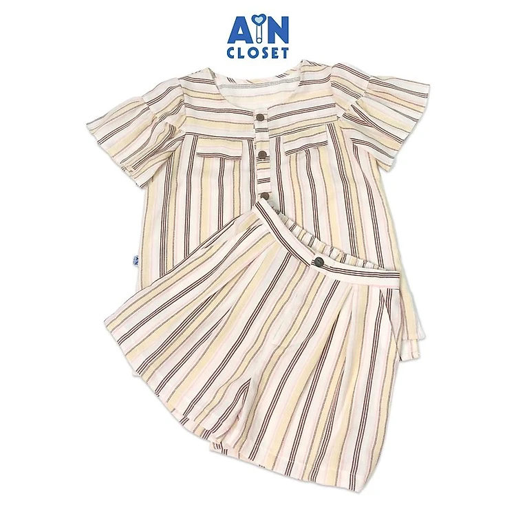 Bộ quần áo ngắn cho mẹ họa tiết Kẻ nâu tay rũ cotton - AICDMEYRKZ7B - AIN Closet