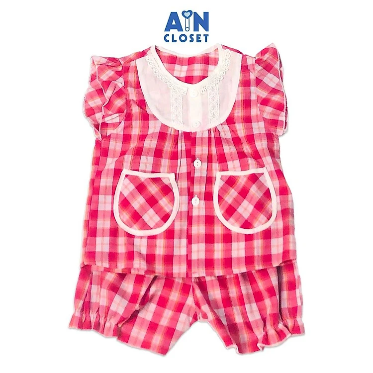 Bộ quần áo ngắn họa tiết Caro trắng đỏ cotton - AICDBGBLLBYY - AIN Closet