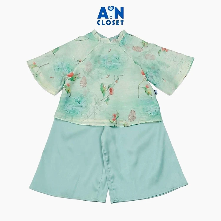 Bộ quần áo Pháp Phục Dài tay lỡ bé gái hoạ tiết Thanh Mai Lụa Xanh - AICDBGPEVXPM - AIN Closet