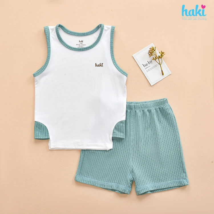 Bộ quần áo sát nách phối màu xẻ sườn vải Modal cao cấp BM012 quần áo hè cho bé; đồ bộ mặc nhà cho bé; set ba lỗ bé trai bá gái sợi sồi siêu mềm mịn HAKI (từ 4kg - 15kg)