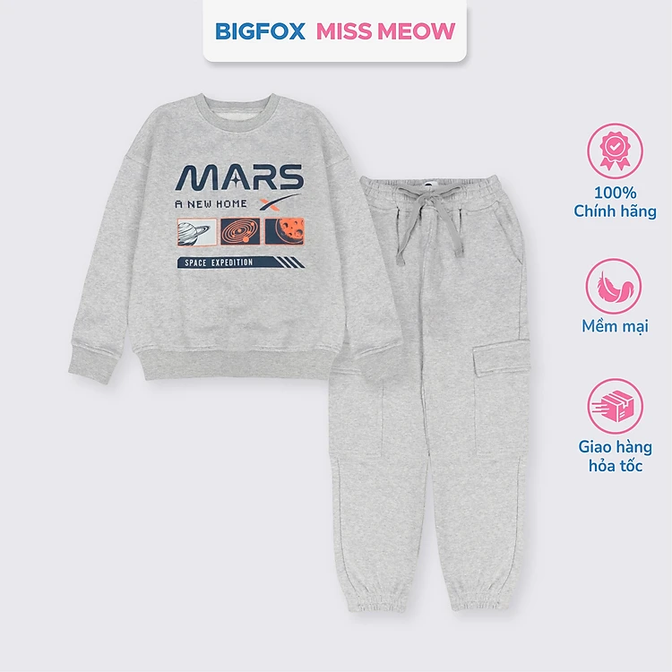 Bộ quần áo thu đông cho bé trai Bigfox Miss Meow size đại mặc nhà vải nỉ dày dặn cỡ trẻ em 7-15 tuổi