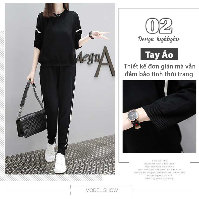 [COMBO] Bộ quần áo nữ thu đông dáng thể thao, Set quần áo nữ cá tính, Áo thu đông nữ đẹp kèm quần thể thao Hot Hit