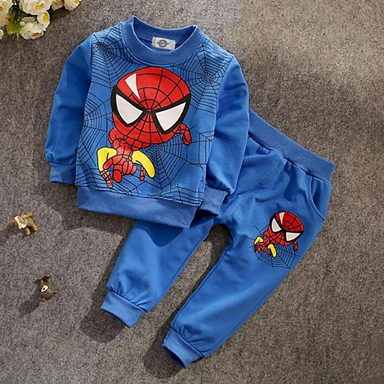 Bộ Quần Áo Thu Mẫu Người Nhện To Cho Bé - Chất Da Cá