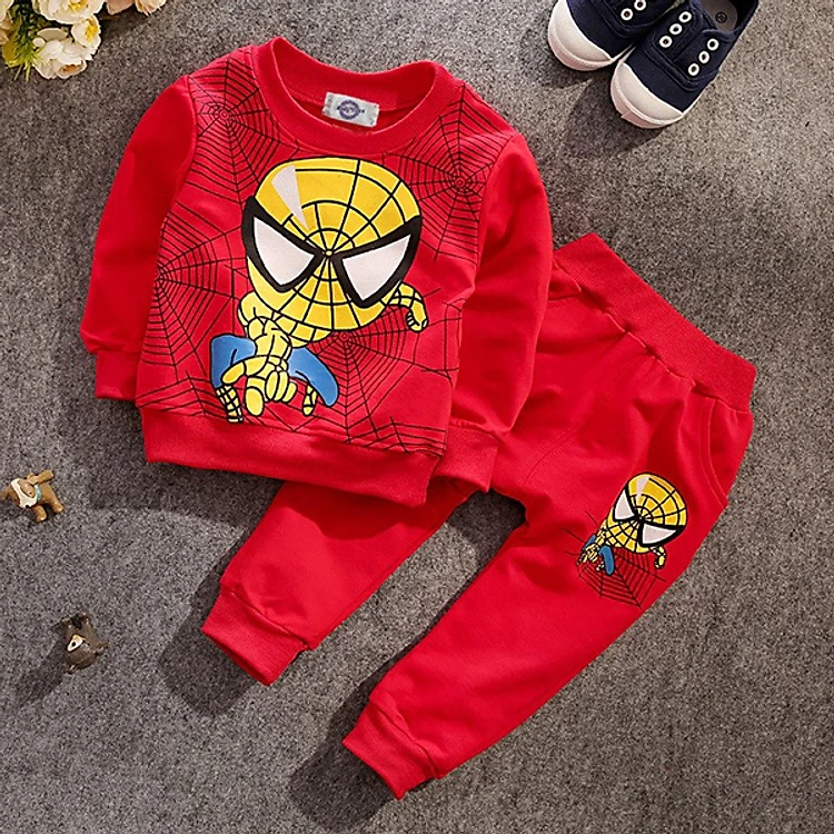 Bộ Quần Áo Thu Mẫu Người Nhện To Màu Đỏ - Chất Da Cá