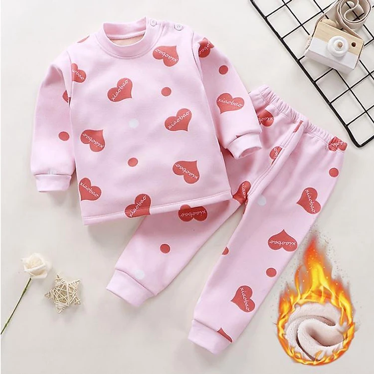 - Tên sản phẩm: Bộ Quần Áo Thun Cotton Thu Đông Dài Tay Lót Nhung Dày Dặn Cho Bé Gái Màu Hồng Trái Tim - Me Yeu Con 1102 - Từ 7-27 Kg