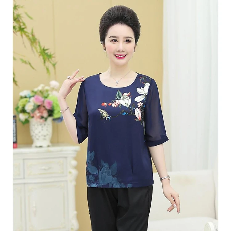 Áo chất liệu lụa thoáng mát, phù hợp cho mẹ mặc nhà mùa hè.