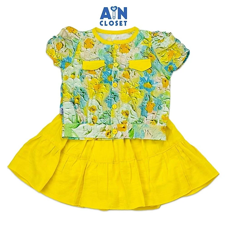 Bộ quần áo váy ngắn bé gái họa tiết Hoa 3D vàng cotton - AICDBG5TMJQ7 - AIN Closet