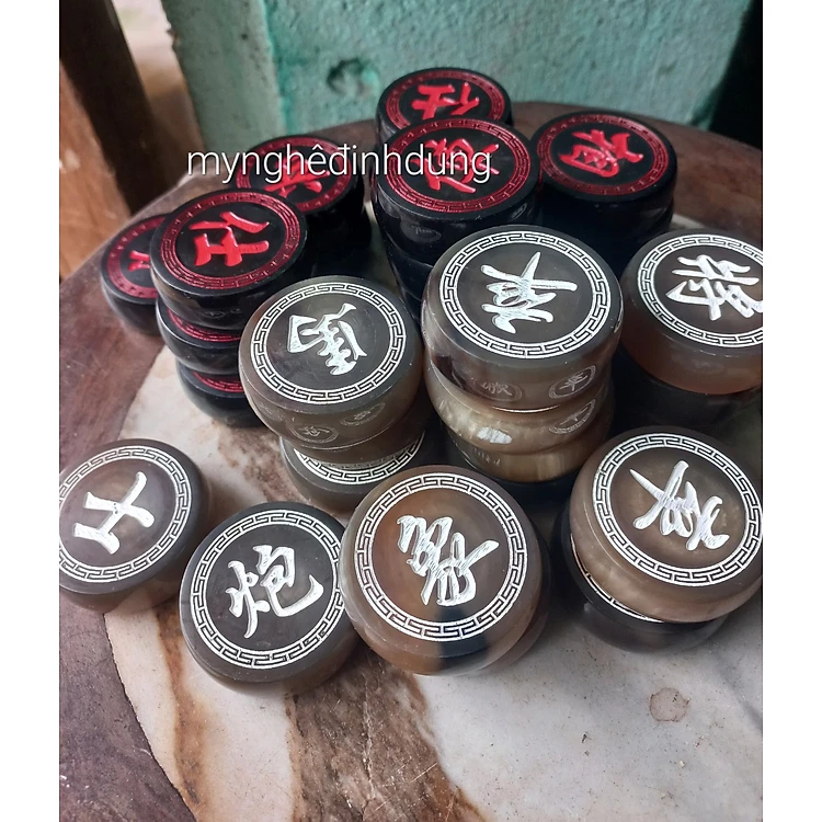 BỘ QUẦN CỜ TƯỚNG BẰNG SỪNG TRẮNG ĐEN CAO CẤP KT 4.0×1.2CM