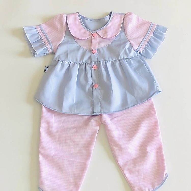 Bộ quần dài áo tay ngắn bé gái Caro nhí hồng xanh cotton - AICDBGOZJJSA - AIN Closet