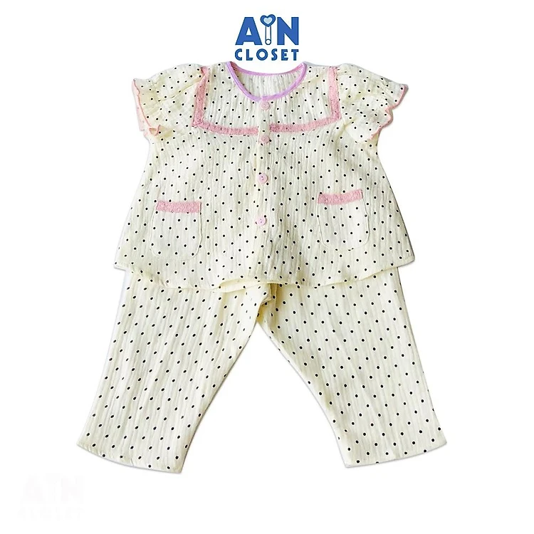 Bộ quần dài áo tay ngắn bé gái họa tiết Bi viền hồng xô muslin - AICDBGAW9YY1 - AIN Closet