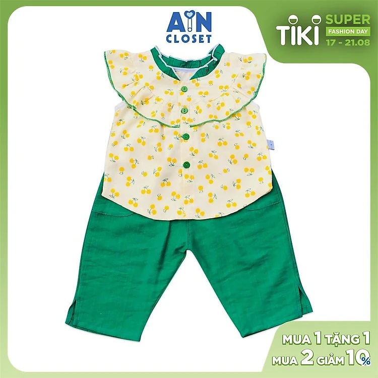 Bộ quần dài áo tay ngắn bé gái họa tiết Cherry vàng quần xanh - AICDBG30X21B - AIN Closet