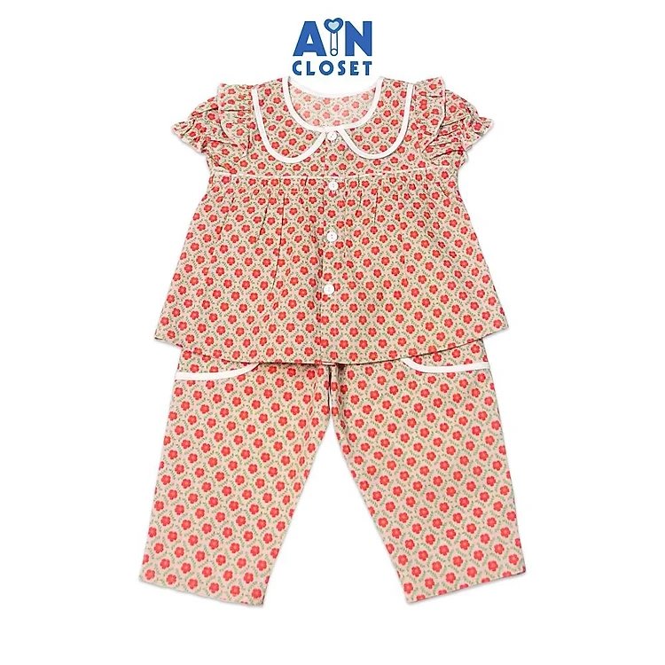 Bộ quần dài áo tay ngắn bé gái họa tiết Gạch Hoa đỏ cotton - AICDBGCQZPLE - AIN Closet