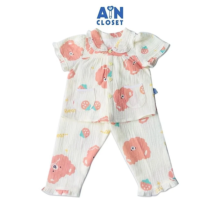 Bộ quần dài áo tay ngắn bé gái Họa tiết Gấu Misa xô muslin - AICDBGC9FFD1 - AIN Closet