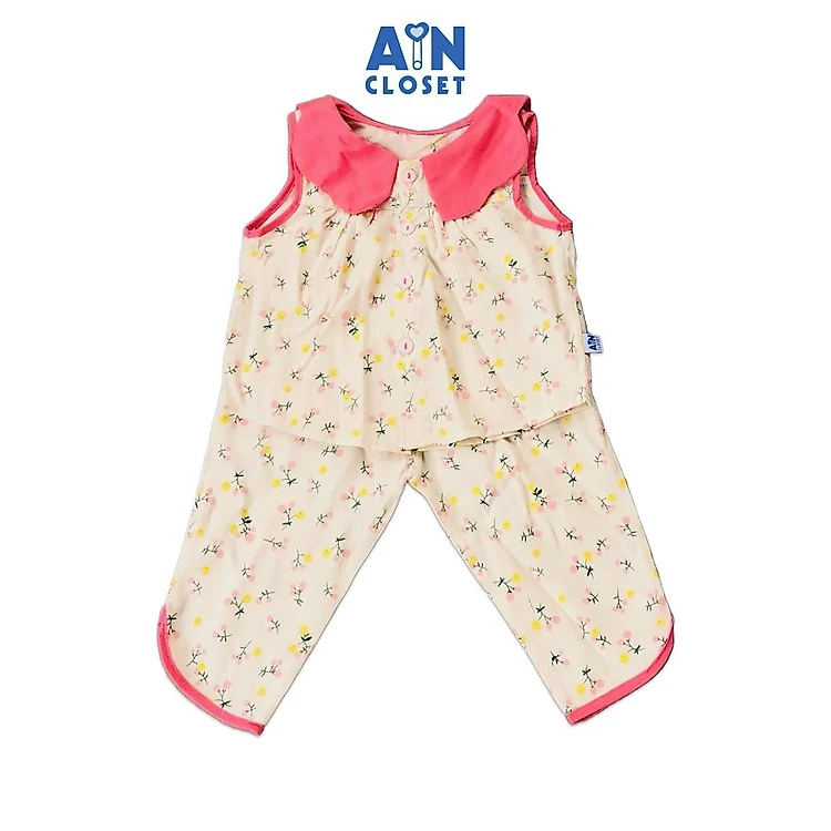 Bộ quần dài áo tay ngắn bé gái họa tiết Hoa nhí cổ hồng - AICDBGVYQOFT - AIN Closet