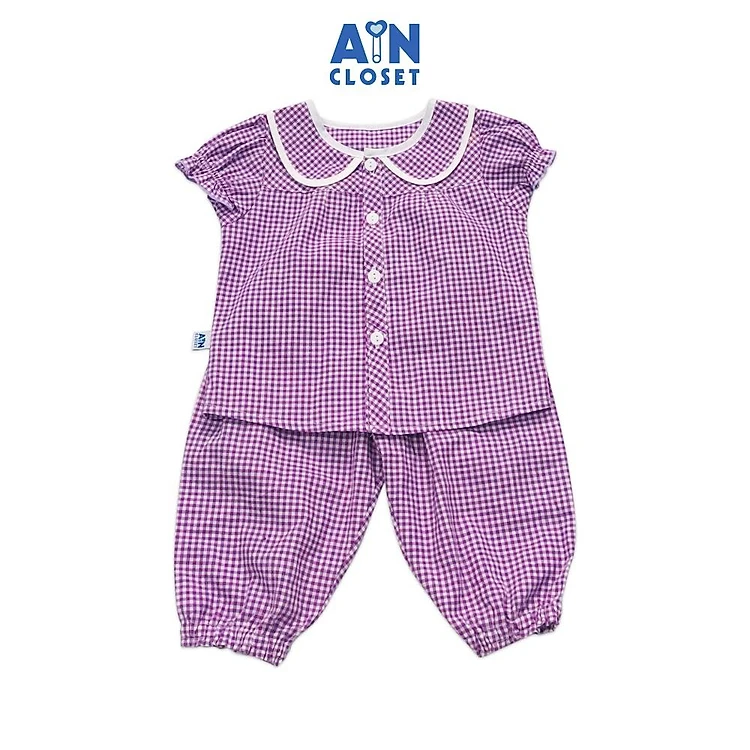 Bộ quần dài áo tay ngắn họa tiết Caro tím cổ sen cotton - AICDBGNZJKIH - AIN Closet