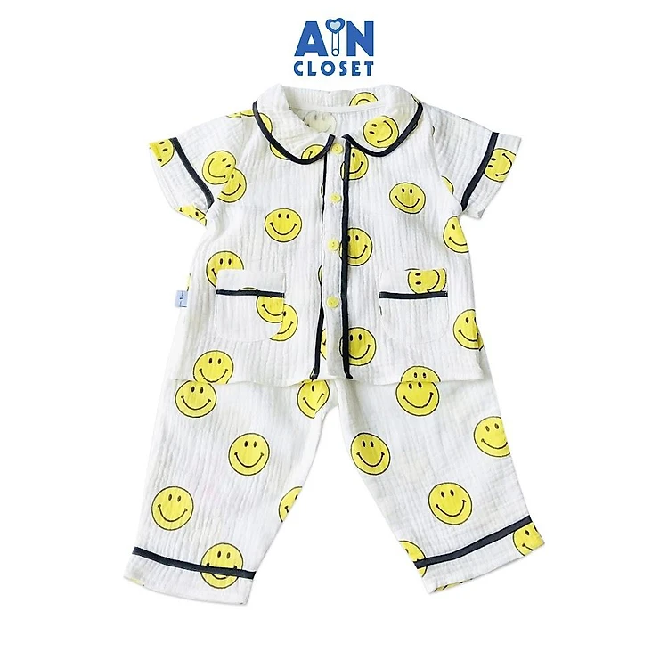 Bộ quần dài áo tay ngắn unisex họa tiết Mặt cười viền đen xô muslin - AICDBTTLIZY5 - AIN Closet