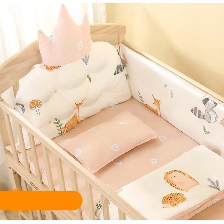 - Bộ quây được gắn vào thành cũi bởi các cặp nơ dây chuông chắc chắn và xinh xắn.