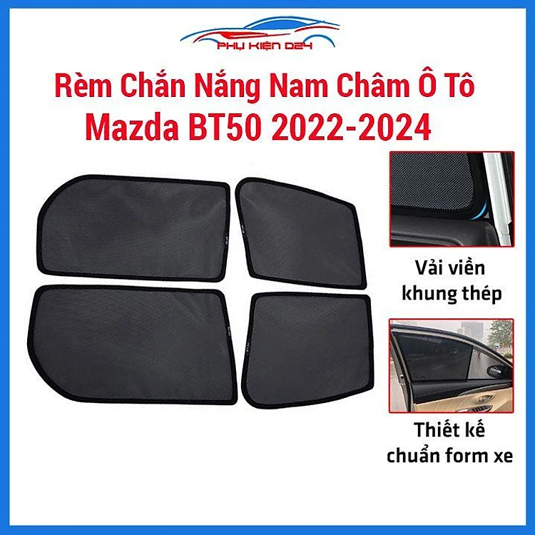 Bộ rèm che nắng ô tô nam châm theo xe Mazda Bt-50, BT50 Năm 2022-2023-2024 chắn nắng tốt, lắp đặt đơn giản, tiện lợi