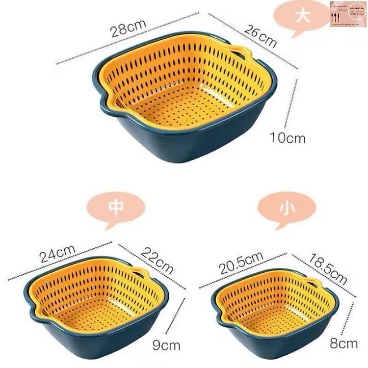 Kết hợp 2 loại rổ thành một đôi, một chiếc có công dụng để ráo, 1 chiếc để đựng nước, mang lại hiệu quả mỗi khi ngâm, rửa