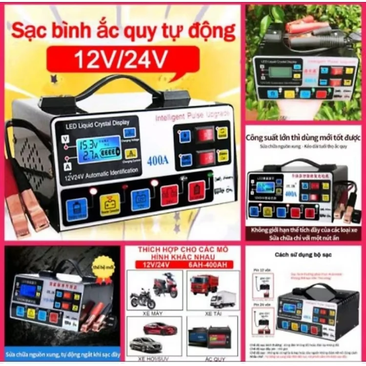 BỘ SẠC BÌNH ẮC QUY 400A SẠC 12V-24V CHỐNG NGƯỢC CHỐNG CHẬP KHỬ SUPAT PHỤC HỒI BÌNH ẮC QUY