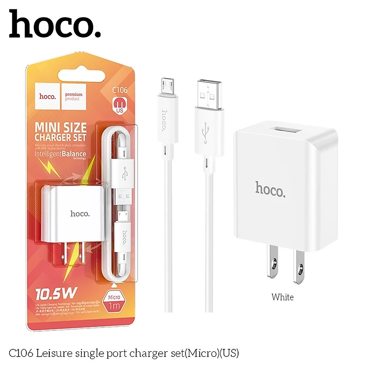 Bộ sạc điện thoại cho Iphone và Android hoco. C106 cổng USB sạc nhanh 2.1A dây dài 1M, dòng điện ổn định an toàn bảo vệ máy - Hàng Chính Hãng