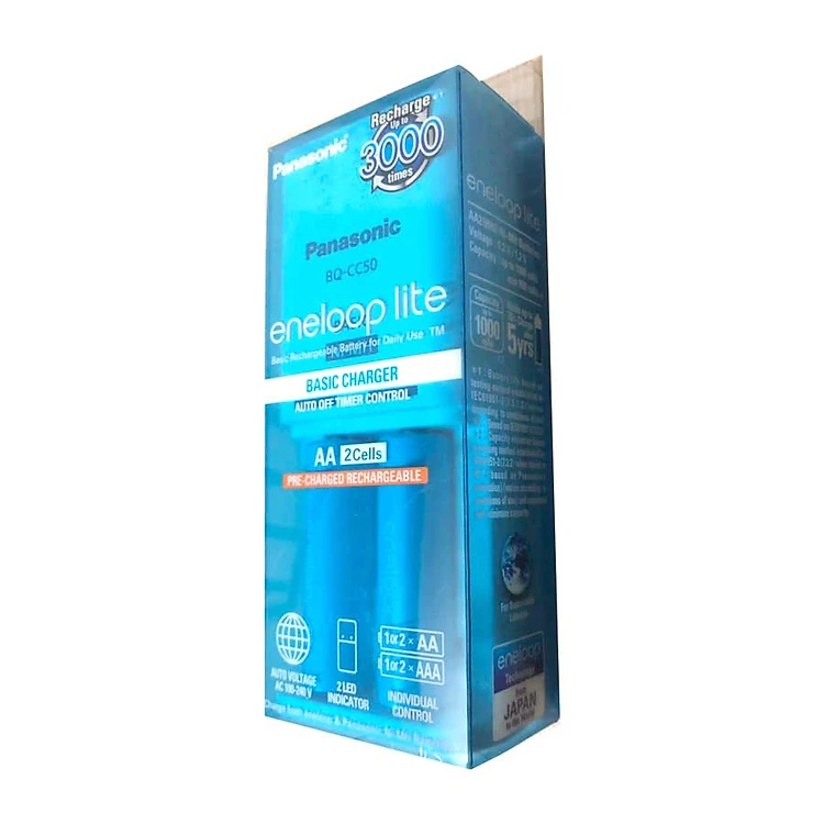Có thể sạc tới 3000 lần với pin sạc eneloop LITE BK-3LCCE đi kèm với bộ sạc này.