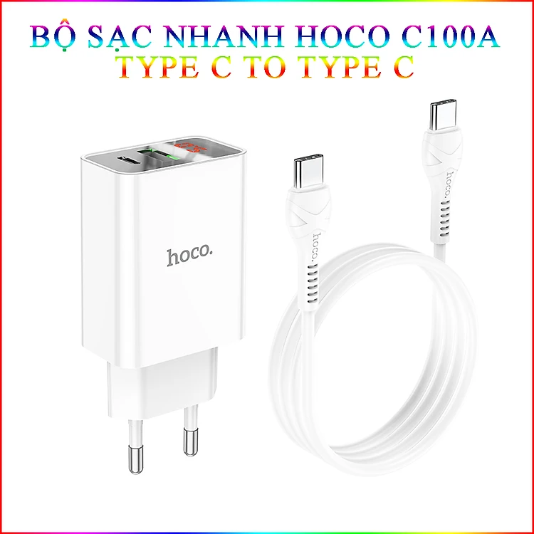 Bộ Sạc Nhanh Dành Cho Hoco C100A Pd20W Qc3.0 Type-C To Type-C Có Đèn Led Dây Dài 1M Hàng Chính Hãng