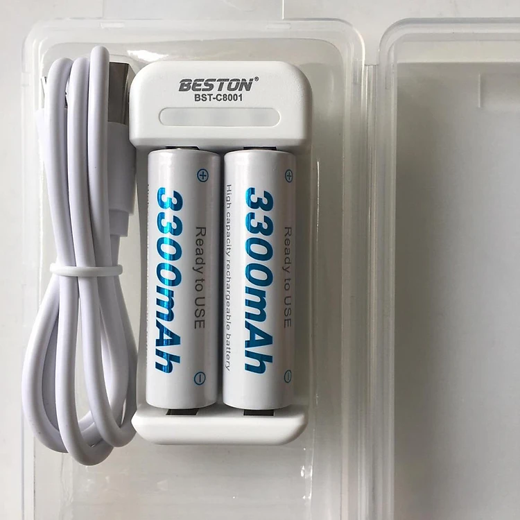 Bộ sạc pin 2 cổng Beston C8001 Sạc được 2 loại pin AA/AAA 1.2V dùng cho micro không dây, đồ chơi, đồng hồ, điều khiển