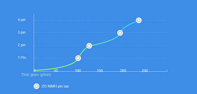 Biểu đồ thời gian cho thấy hiệu năng tối ưu của sản phẩm với thời gian sạc đầy nhanh chóng.