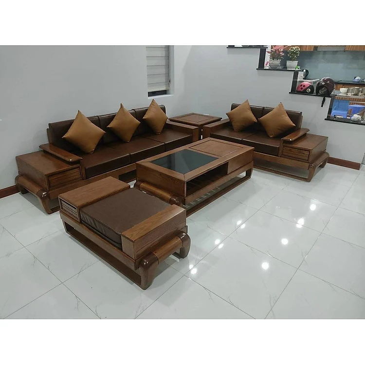 Bộ salon Gỗ Bích nệm da Tundo 3m x 2m x 80 cm