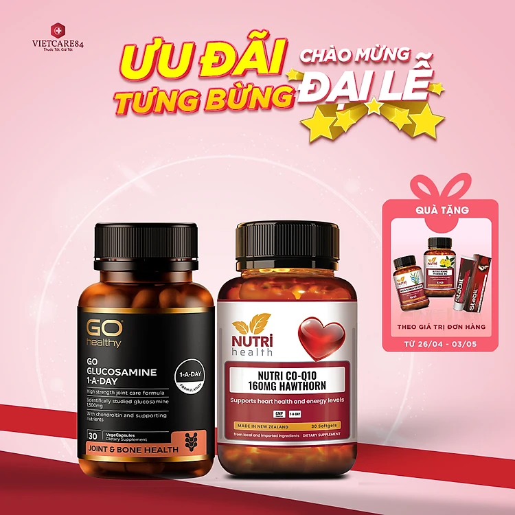 Bộ Sản Phẩm Bổ Tim, Bổ Xương Khớp New Zealand: Bổ Tim Nutri Co Q10 160g Hawthorn -30 Viên; Go Glucosamine 1-A-Day 1500mg