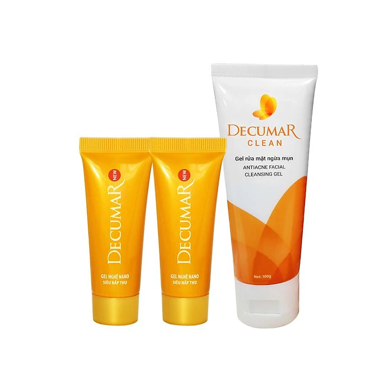 BỘ SẢN PHẨM HỖ TRỢ TRỊ MỤN DECUMAR (GỒM 2 GEL HỖ TRỢ TRỊ MỤN DECUMAR NEW VÀ 1 GEL RỬA MẶT NGỪA MỤN DECUMAR CLEAN)