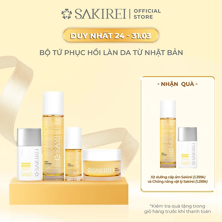 Chống nắng vật lý làm sáng mịn da Sakirei UV Total Defense Broad Spectrum SPF 50+ PA++++ Tinted Sunscreen - 50ml