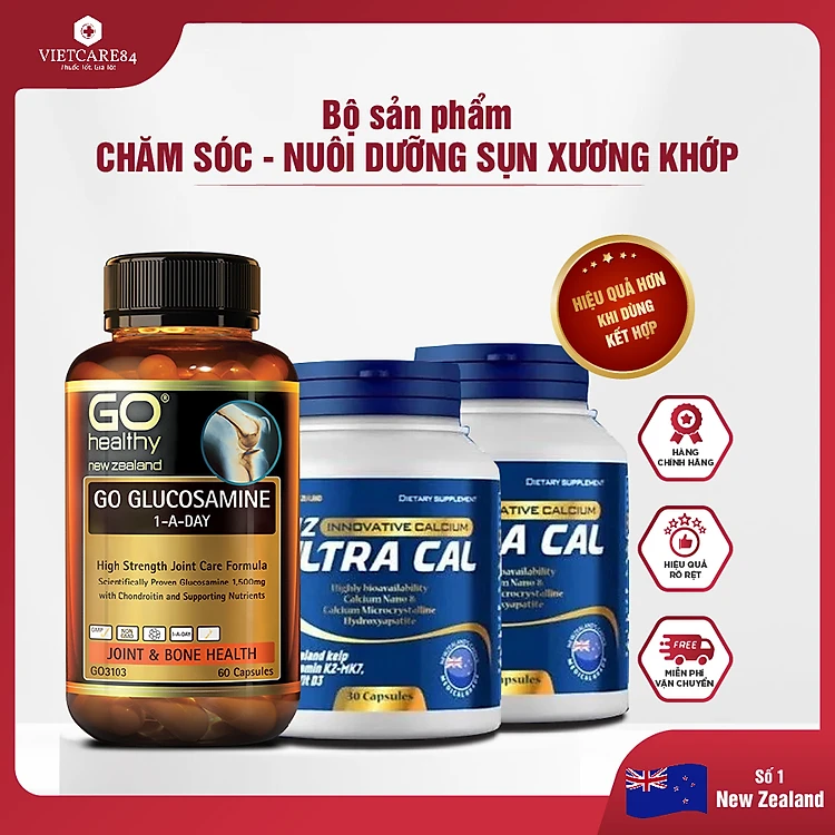 Bộ Sản Phẩm Nhập Khẩu Chăm Sóc Xương Khớp: Viên Uống Xương Khớp Go Glucosamine 1-A-Day 60 Viên Và 2 Hộp Viên Uống Canxi Hữu Cơ Nano NZ Ultra Cal 30 Viên