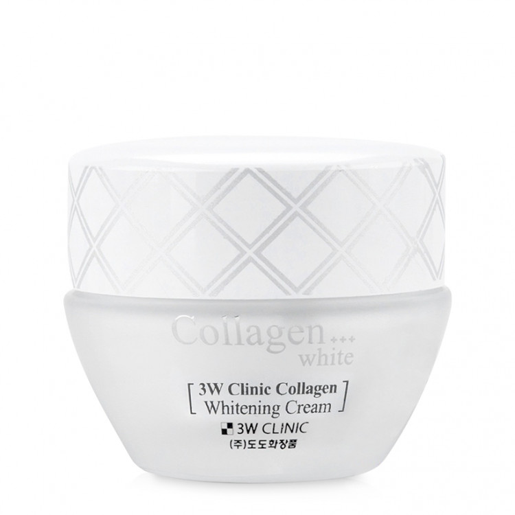 - Kem dưỡng trắng da 3W Clinic Collagen White là loại kem giàu dinh dưỡng chứa các thành phần làm trắng, Niacin giúp giữ cho làn da luôn trắng sáng, làm mờ các vết thâm, nám, tàn nhang sạm đáng ghét trên khuôn mặt bạn do thời gian và một số nguyên nhân khác gây lên.