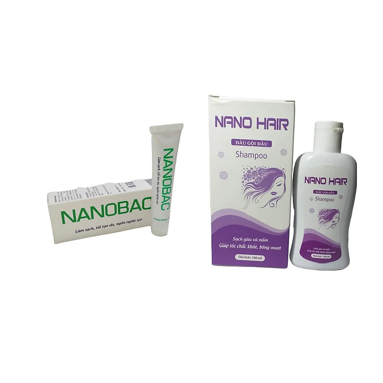 [BỘ SẢN PHẨM] Gel bôi Nano Bạc làm sạch da, mờ sẹo và thâm do mụn- tuýp 20g & Dầu gội ngừa gàu và nấm da đầu NANO HAIR giúp tóc sạch gàu và chắc khỏe chai 100ml, hàng chính hãng