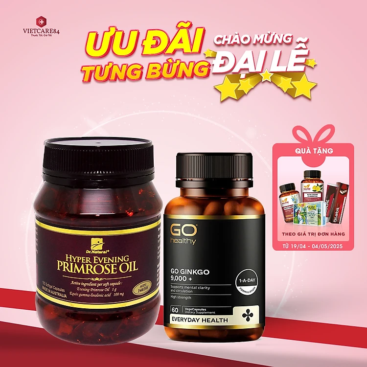 Bộ Sản Phẩm Hỗ Trợ Giấc Ngủ Cho Phụ Nữ Trung Niên: Viên Bổ Não Go Ginkgo 9000+ 60 Viên, Viên Uống Nội Tiết Nữ Hyper Evening Primrose Oil 180 Viên