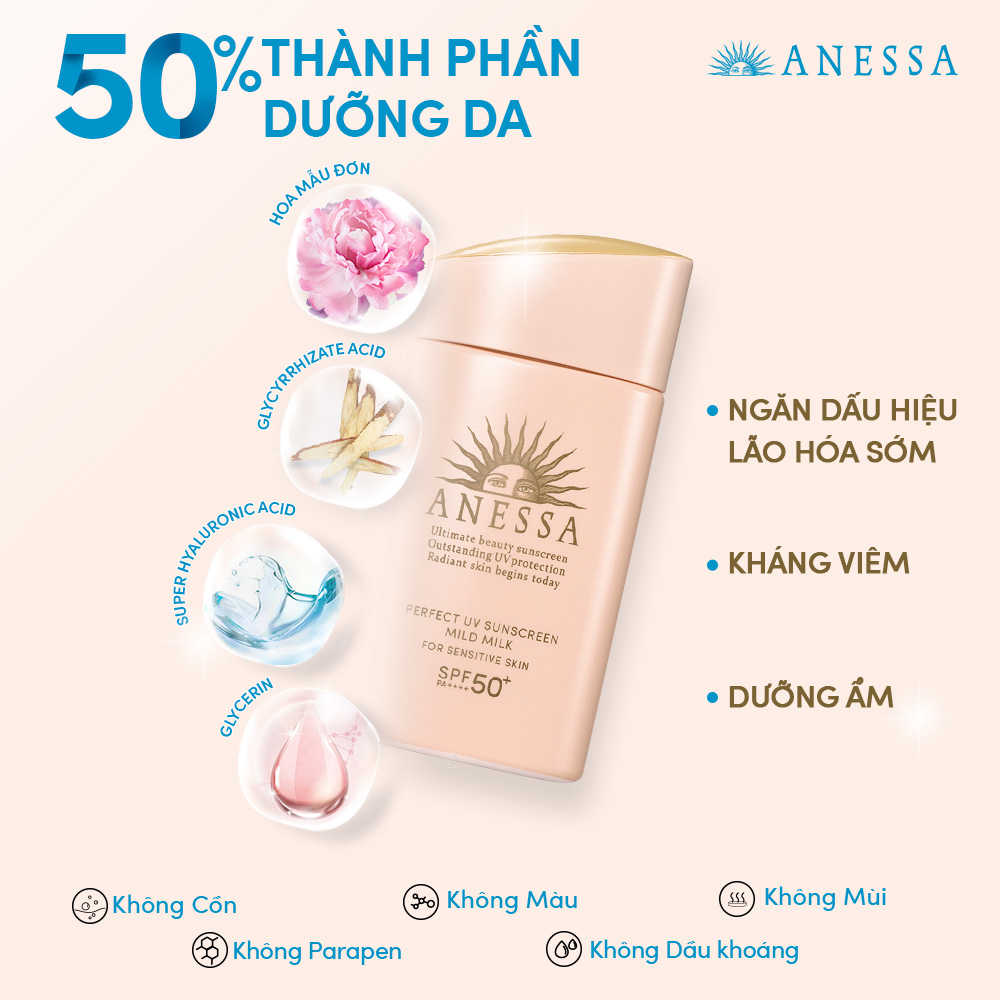 *Sữa chống nắng dịu nhẹ cho da nhạy cảm và trẻ em Anessa SPF 50+ PA++++ 60ml