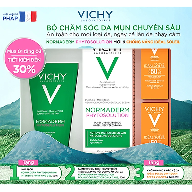 • Bộ Sản Phẩm Kem Dưỡng Dành Cho Da Mụn Với Tác Động Kép Vichy Normaderm Phytosolution (New) Chăm sóc da hoàn hảo, với thành phần an toàn cho da. Dưỡng và chăm sóc da trắng mịn