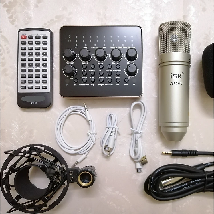 Full Hộp Micro ISK AT-100(Bông lọc,sock mouth,dây mic)