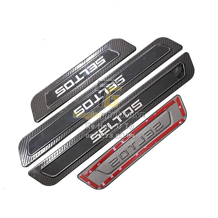BỘ SẢN PHẨM Nẹp bước chân và ốp chống trầy cốp Kia Seltos - Mẫu vân Carbon
