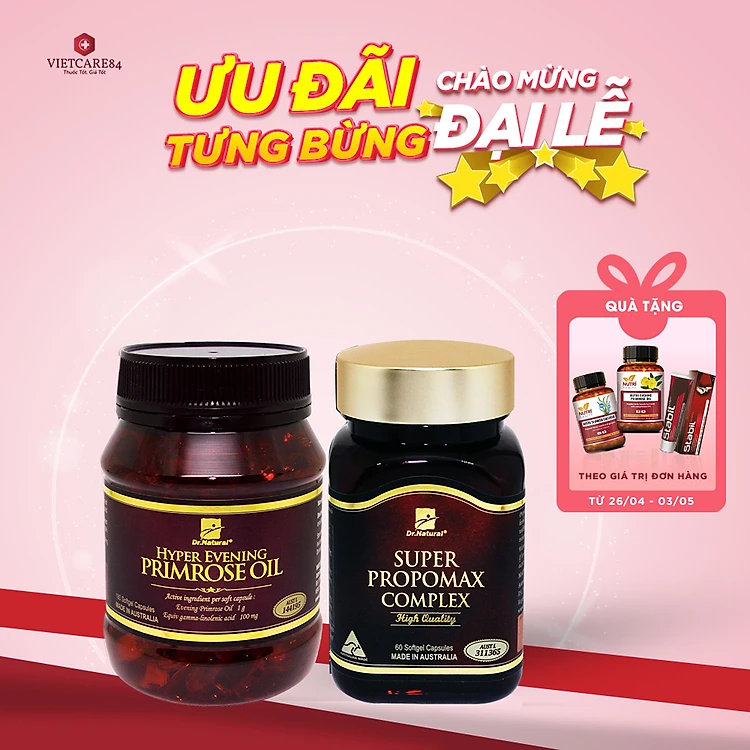 Bộ Sản Phẩm Tăng Đề Kháng, Cải Thiện Nội Tiết Tố: Viên Uống Keo Ong Supper Propomax Complex 60 Viên, Viên Nội Tiết Hyper Evening Primrose Oil 180 Viên