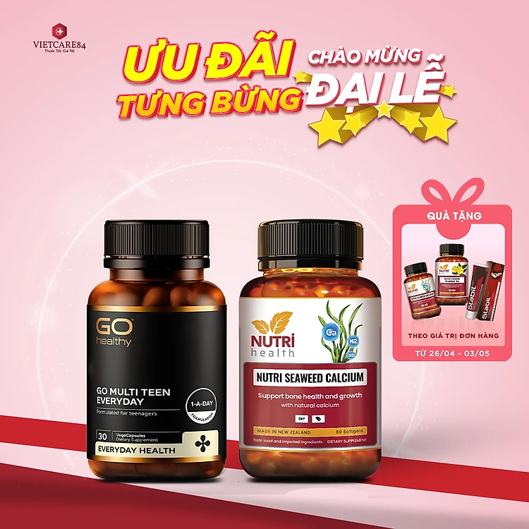 Bộ Sản Phẩm Tăng Chiều Cao: Viên uống Canxi hữu cơ New Zealand Nutri Seaweed Calcium 60 Viên và GO MULTI TEEN EVERYDAY