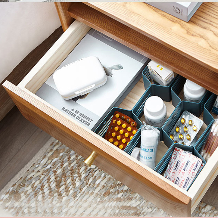• Vách ngăn với 12 thanh ghép nhựa, được ghép với nhau bằng các chốt nhựa nhỏ chắc chắn, tạo thành 17 ô lục lăng để chứa đựng nhiều vật dùng như: Đồ lót, vớ, khăn, dây nịt, phụ kiện điện thoại, tai nghe, mỹ phẩm, bút, remote, …