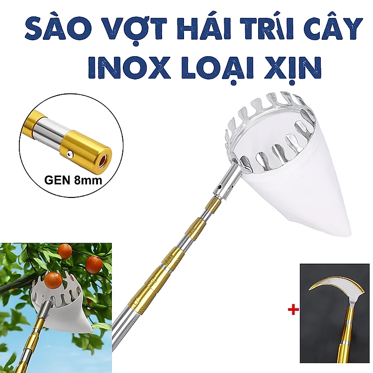 Bộ Sào Vợt Inox Hái Trái Cây Trên Cao – Rút Dài Tới 6M, Kèm 4 Phụ Kiện Tiện Lợi Hàng Xịn Loại 1