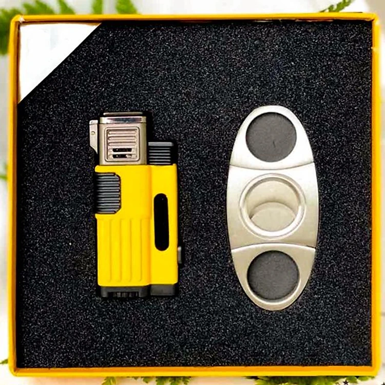 Bộ Set Phụ Kiện 2 Món HB-115 Gồm Vỏ Hột Quẹt Bật Lửa Khò 3 Tia Mạnh Mẽ + Cắt Thiết Kế Sang Trọng